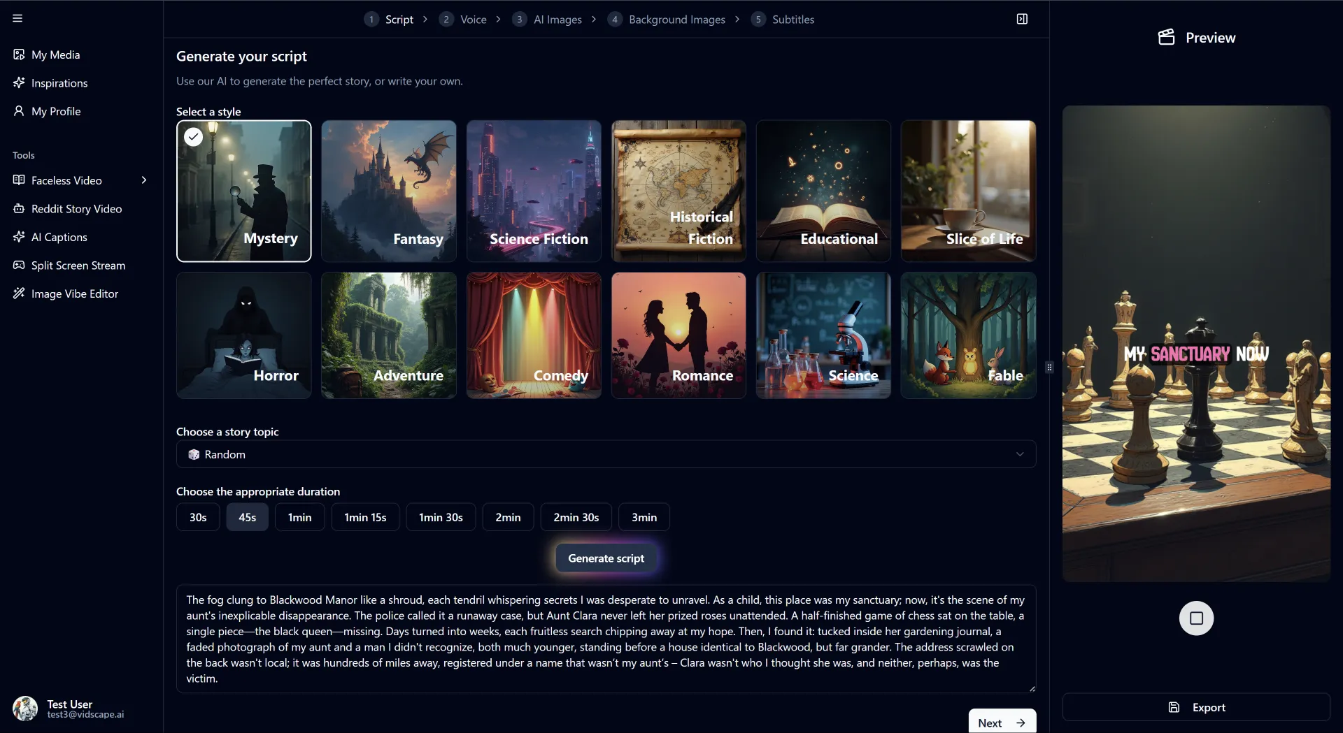 Create viral videos in seconds using just your idea and Vidscape AI tools.